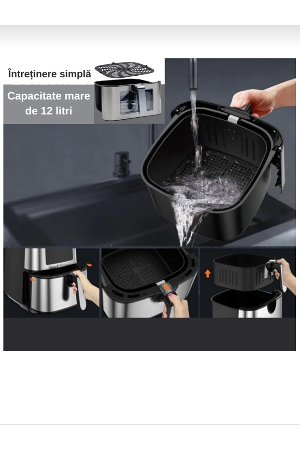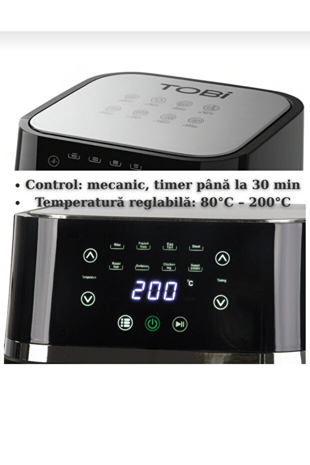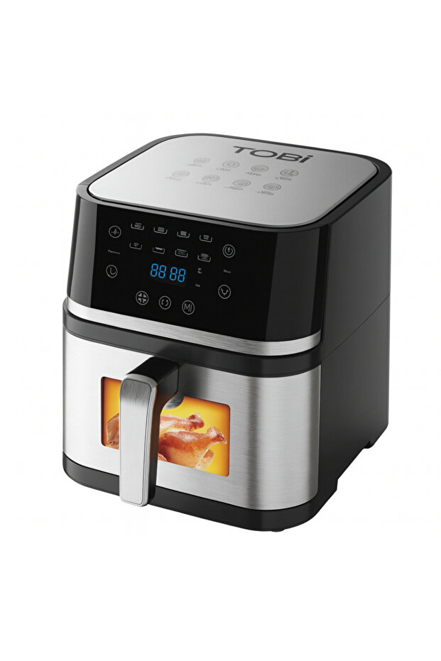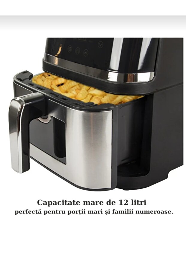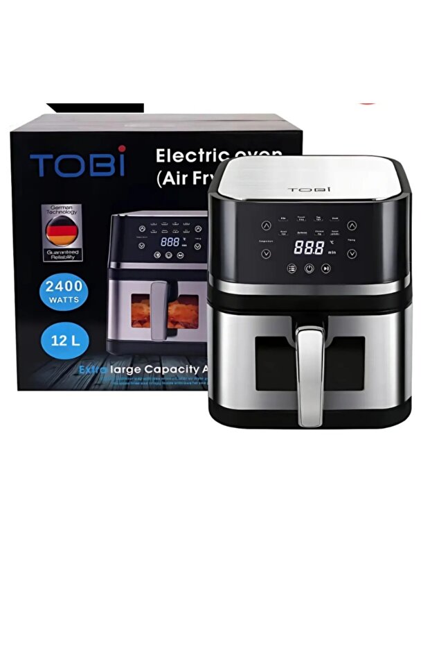 Friteuză cu aer Tobi, 12 L, 2400 W, fereastră transparentă, temperatură reglabilă.